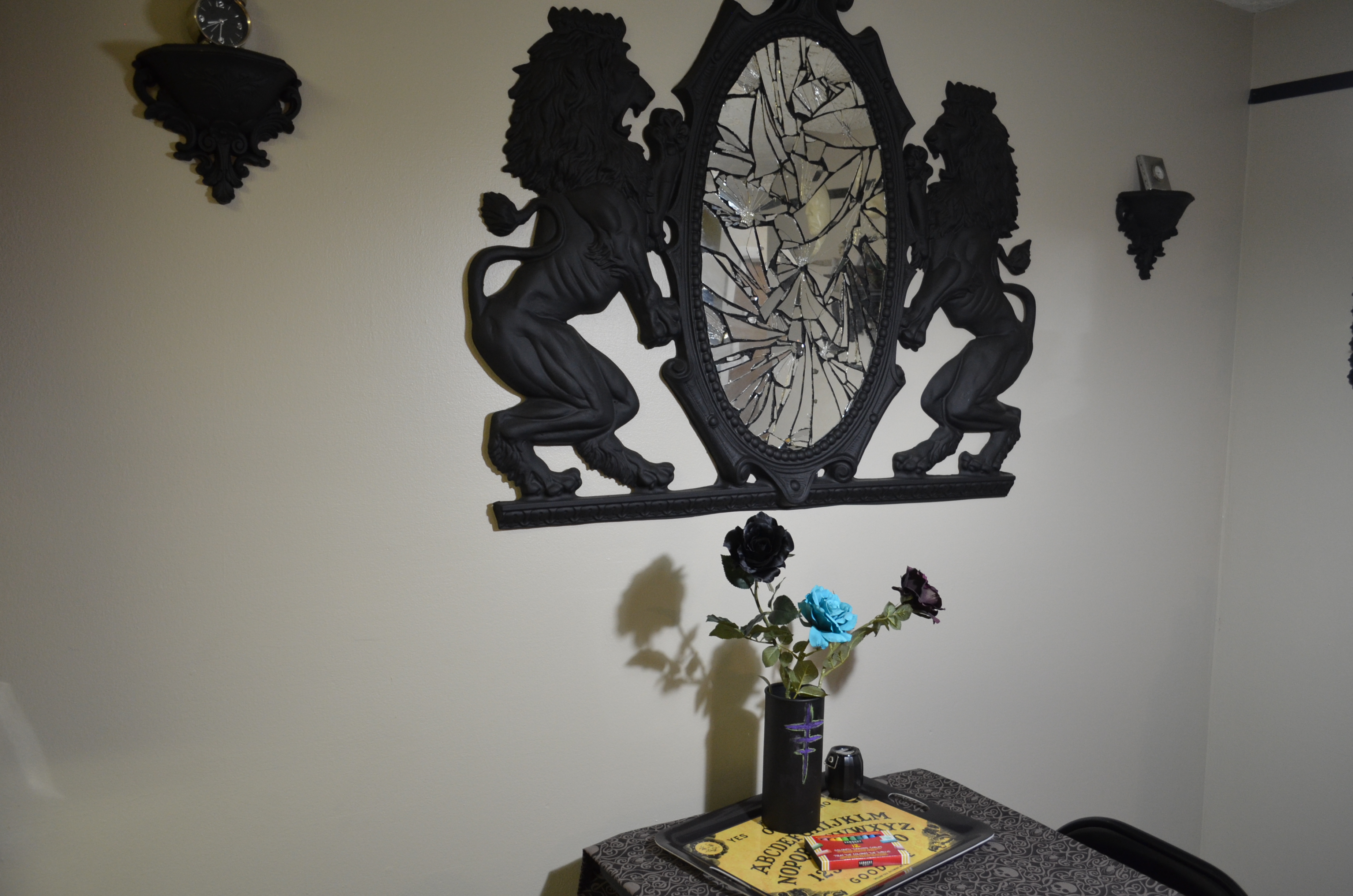 I made the mirror myself. You don't want to know how many times I cut myself gluing those pieces in.