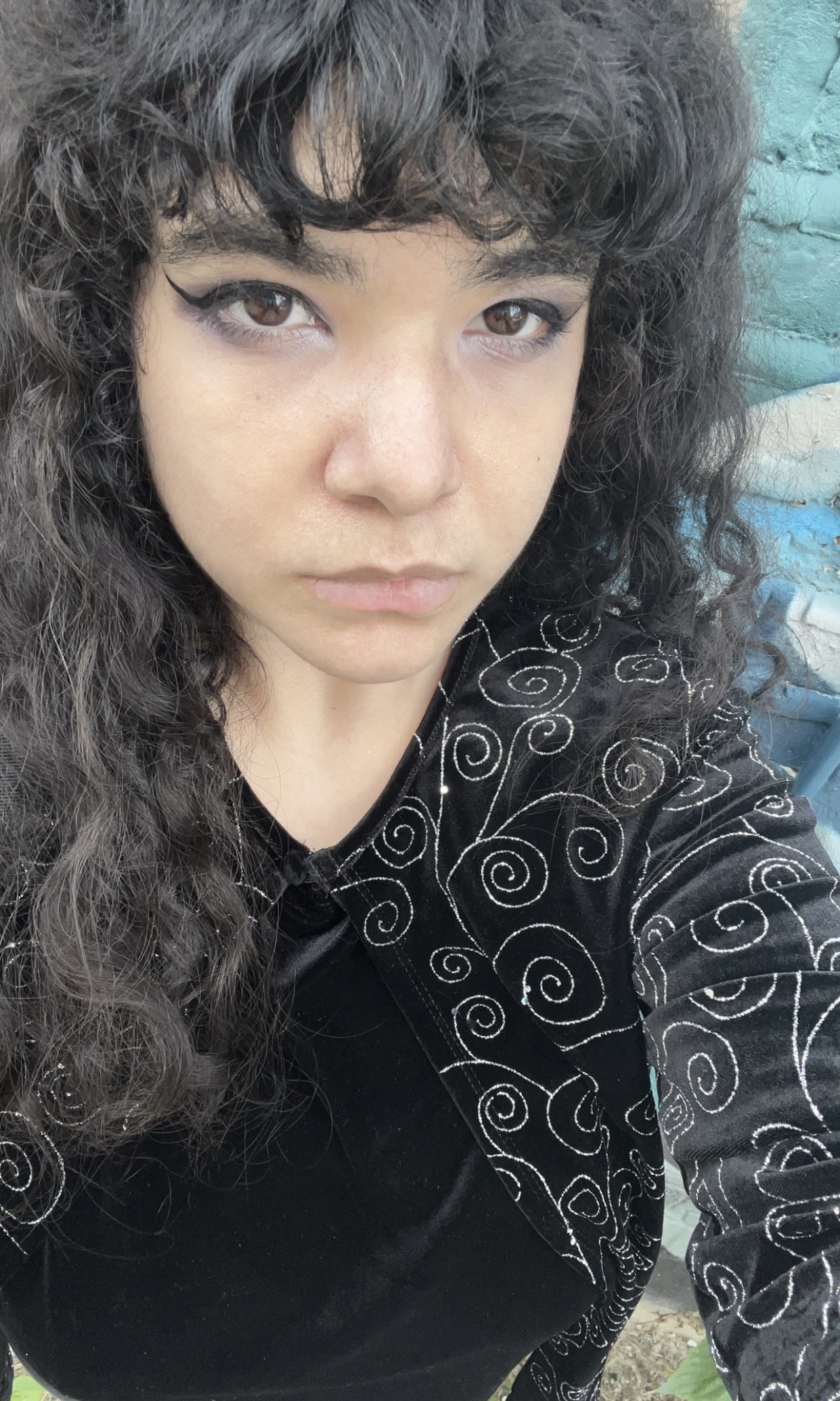 Most recent selfie I took on my birthday. Behold my swirly shirt!