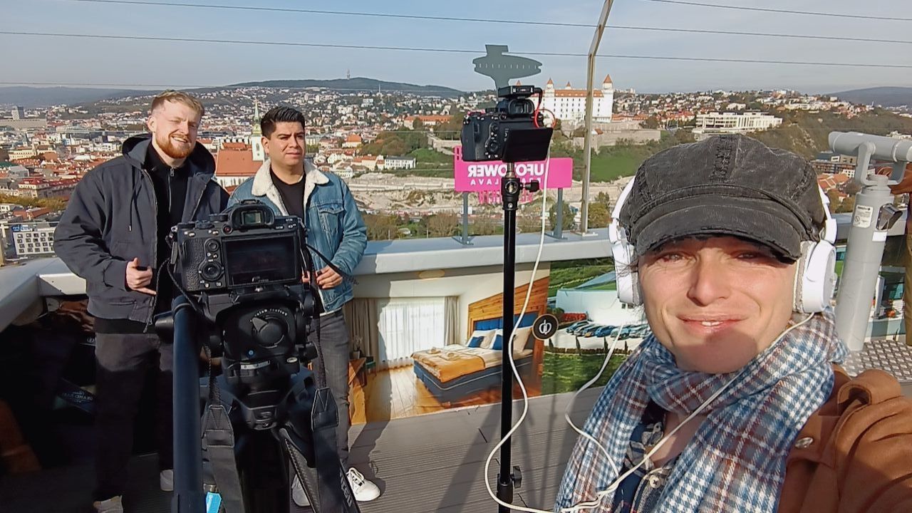 Filming on a hellishly bright morning in Riga with my friends (for a Youtube channel)